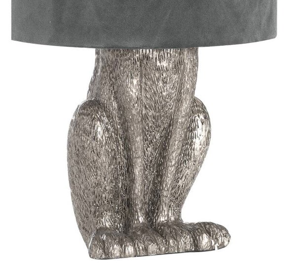 This the Silver Hare Table Lamp With Grey Velvet Shade. A resin lamp catering perfectly to the growing demand for quirky statement lamps