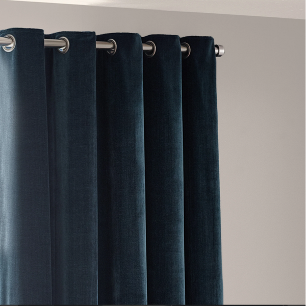 Heavy Chenille Velvet Room Darkening Eyelet Curtains Navy