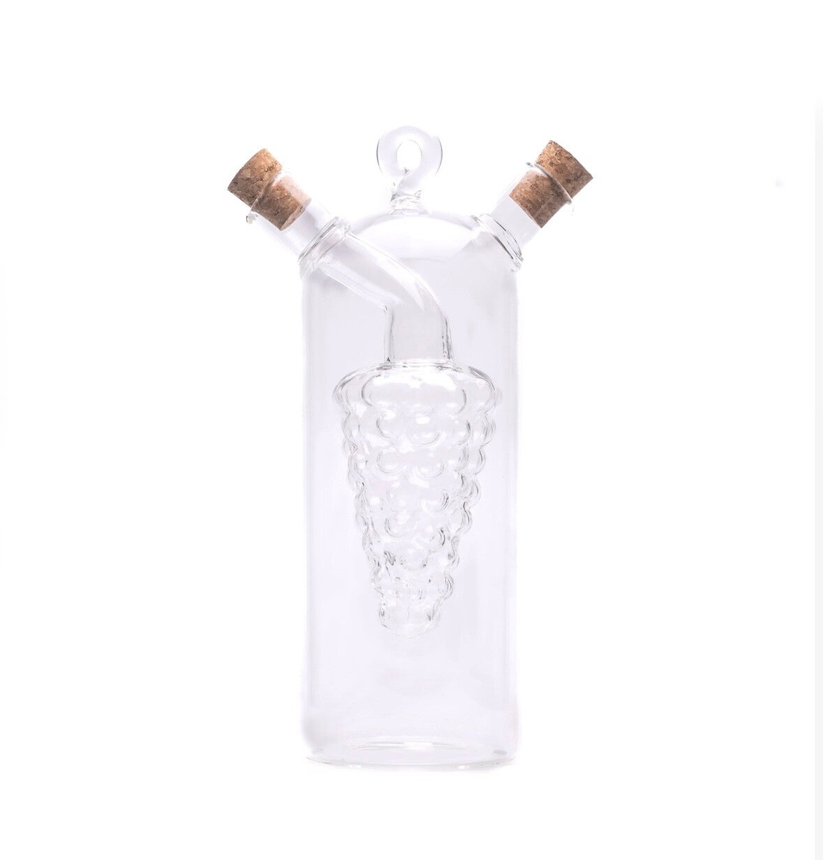 The two-in-one grape and balsamic vinegar bottle is a versatile and practical choice for any home cook or food enthusiast. Its innovative design allows for the convenient storage and dispensing of both oil and vinegar, making it a functional kitchen accessory and a stylish addition to any dining table.