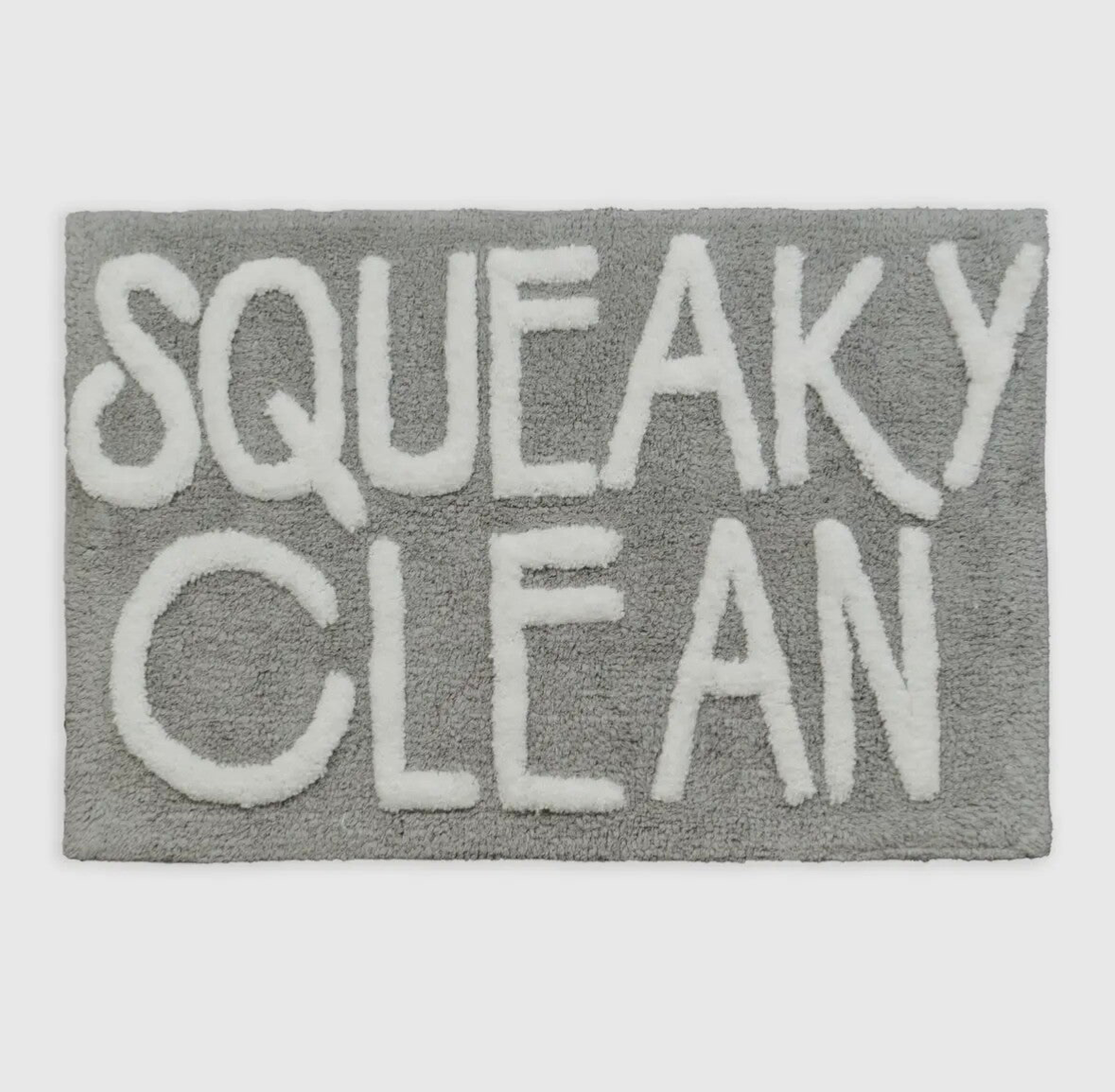 Transform your bathroom into a haven of style and comfort with our Squeaky Clean Slogan Bath Mat.Crafted from a luxurious blend of cotton and polyester, this bath mat offers unmatched softness and absorbency.The hand-tufted slogan "Squeaky Clean" stands out beautifully against the grey background, adding a playful yet sophisticated touch to your bathroom decor. The elegant colour combination of mid grey and white ensures that this bath mat complements a wide range of bathroom styles.Designed with convenience in mind, this non-slip bath mat is easy to clean, is machine washable and dries quickly, making it a practical addition to any bathroom