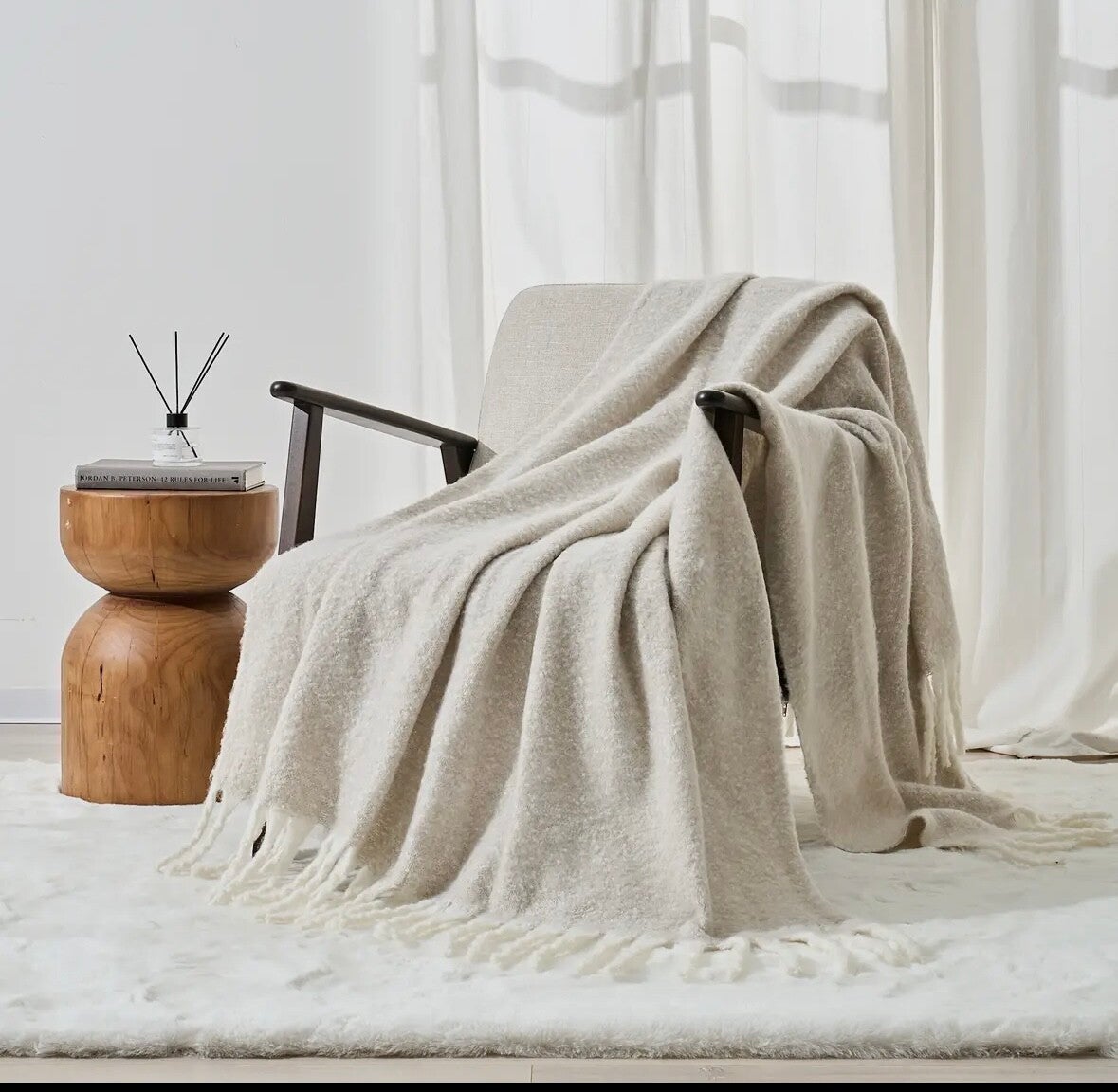 Elevate your interior with our Faux Mohair Throw, which boasts a plain yet stylish design. The long tasselled edge adds a touch of elegance to this cosy piece, available in multiple colourways to suit personal taste, whether you choose to drape it over your bed or as an added layer of warmth on the couch. Its super soft and inviting texture invites you to relax and unwind, and with the added benefit of being machine washable, it's both luxurious and practical. Finished neatly folded and ribbon tied, these blankets make for the perfect gift for any home decor enthusiast xxx
