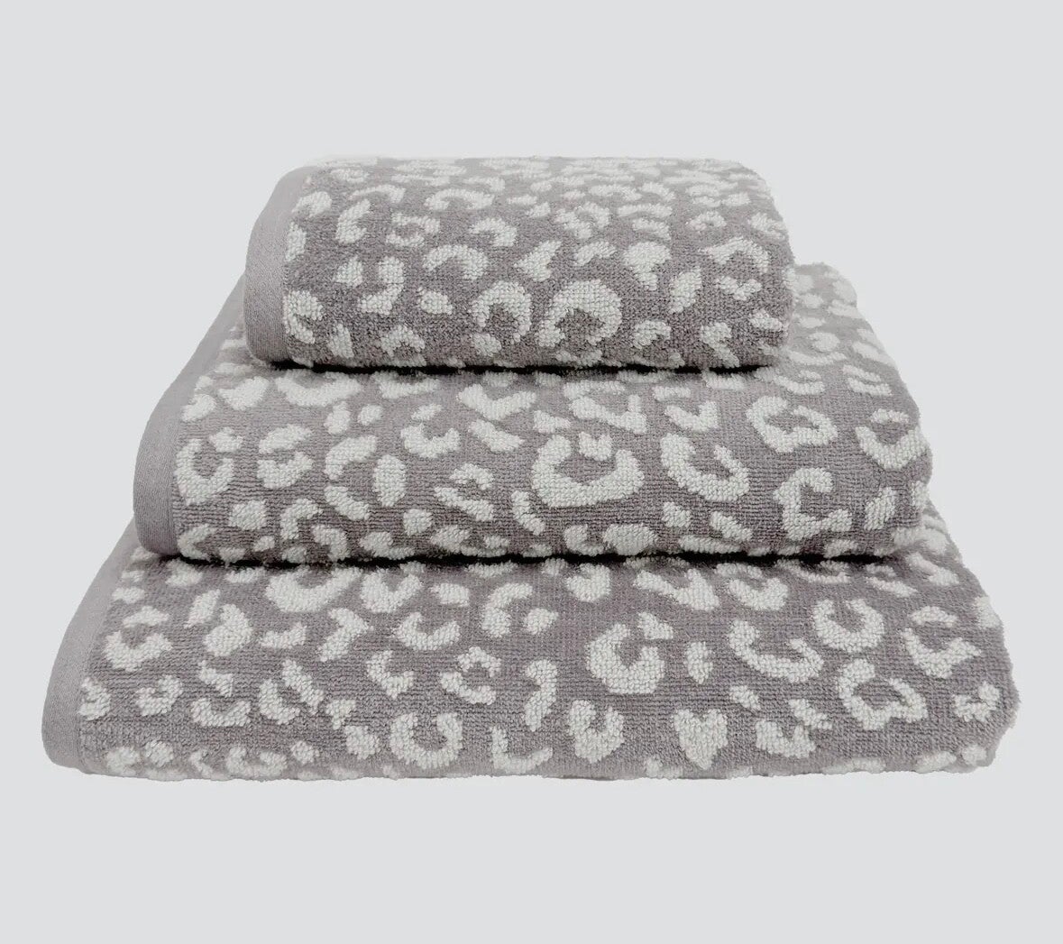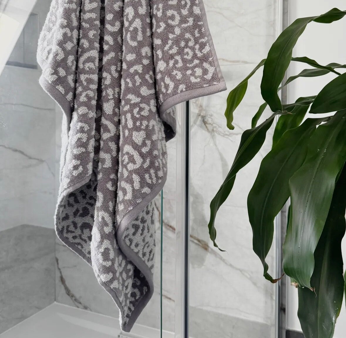 Bring a touch of bald sophistication to your bathroom with these beautiful Leopard print jacquard towels