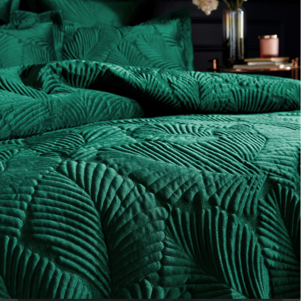 Palmeria Quilted Velvet Duvet Cover Set Emerald