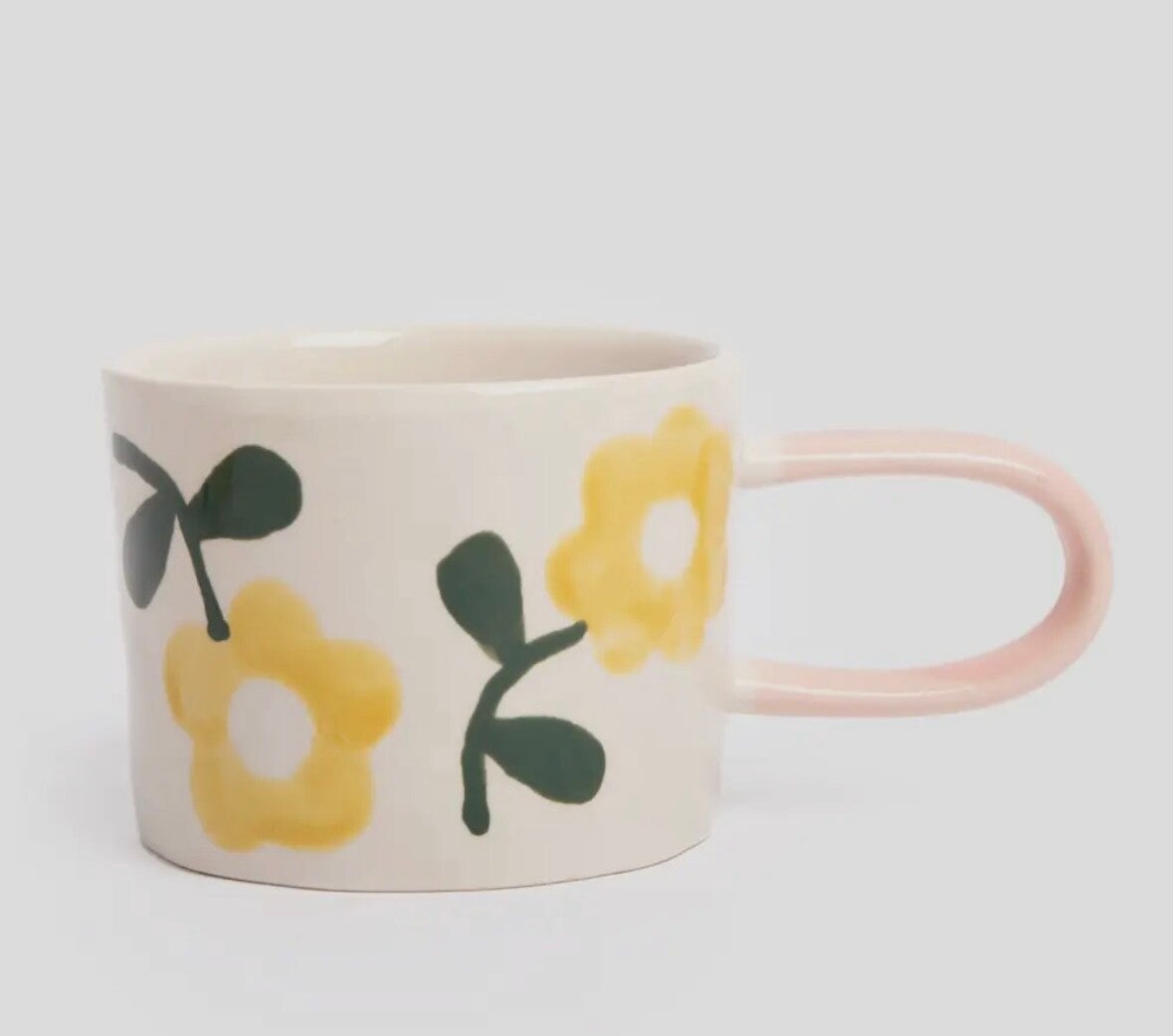 Our yellow flowers hand painted glazed stoneware mug will add a splash of colour and fun to your kitchen. Purchased individually or as a set, our mugs feature bold prints and contrast colour elongated handle.