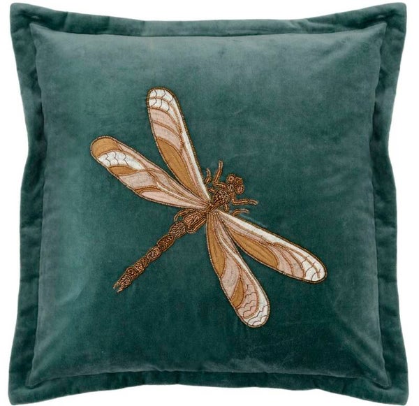 in soft velvet with beaded and embroidered dragonfly design