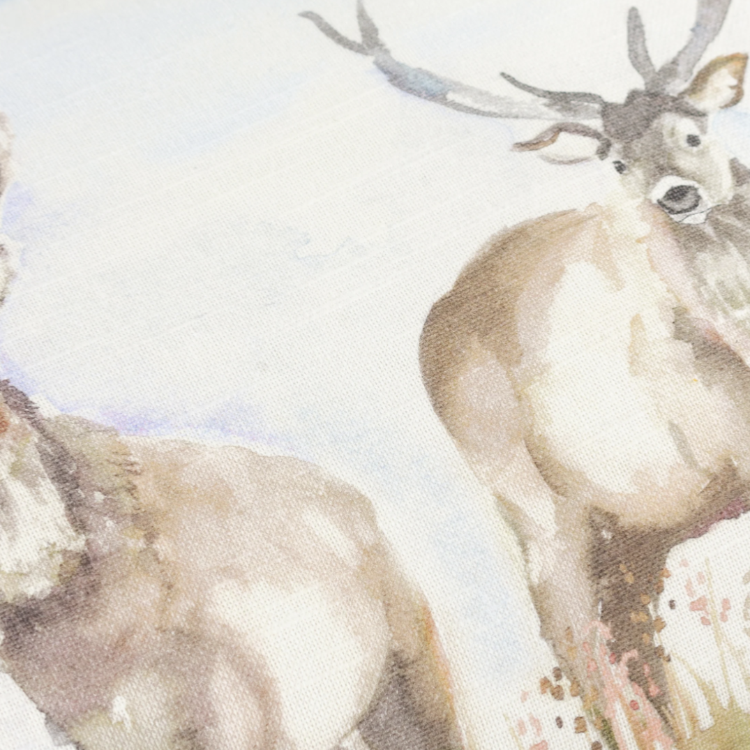 The Moorland Stag Outdoor Cushion transforms any outdoor space with classic British charm. Made from a durable cotton/linen blend, this cushion withstands outdoor conditions through its water-resistant coating. One side displays a hand-painted stag against the British countryside, while the reverse presents a traditional check pattern. This piece combines artistic design with practical comfort, making it well-suited for garden seating arrangements.
