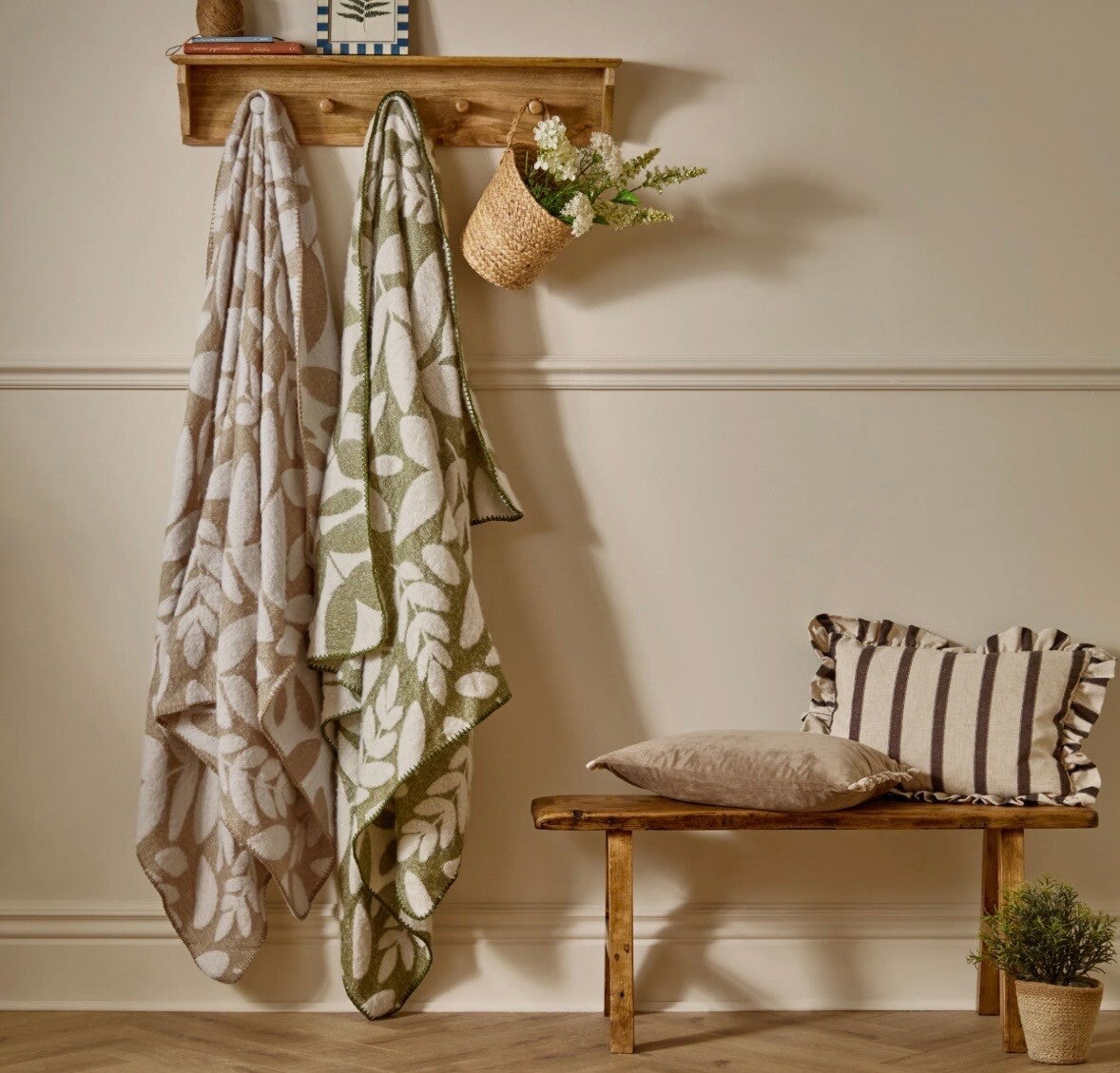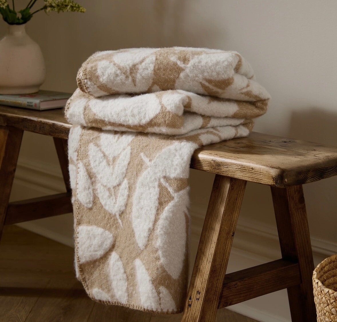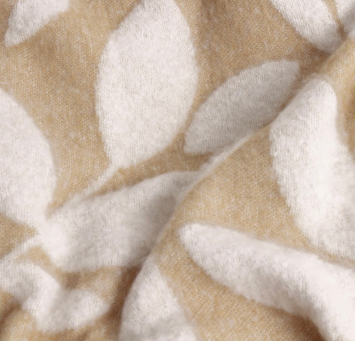 The Hazel Throw is a refined addition to any serene setting, combining beauty and functionality. Its double-sided design features an earthy leaf pattern on both sides, infusing interiors with the calming essence of nature. Constructed from durable materials, the throw offers a substantial weight for comfort and warmth during colder months, while its elegant blanket-stitched trim adds a timeless detail that enhances its relaxed yet sophisticated aesthetic.