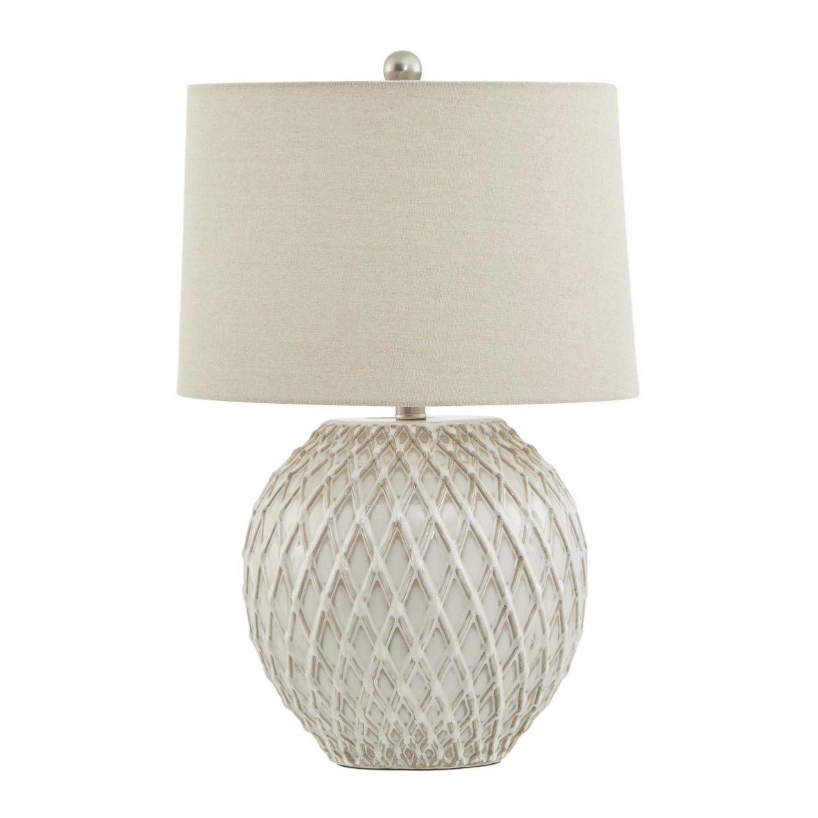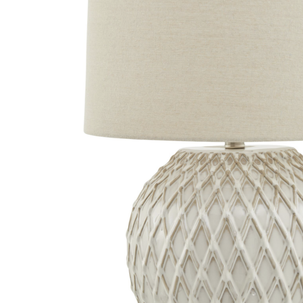 - Elegant Lattice Ceramic Table Lamp in a neutral cream colour