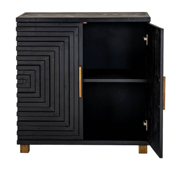 This NOIR finished sideboard delivers understated luxury through clean lines and precise craftsmanship the perfect equilibrium of form and storage function Pairs seamlessly with modern metallic and geometric accessories