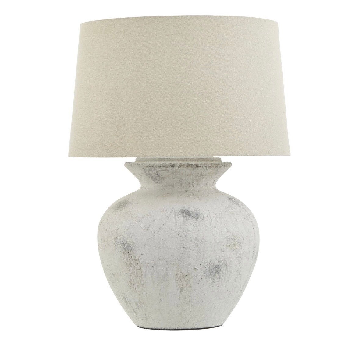 Inspired by our bestselling Darcy vase, The Downton Antique White Lamp features a beautifully weathered ceramic base in a soft, distressed white finish. The generous proportions (H:61cm x W:46cm) make a bold statement, while the neutral linen shade ensures versatile appeal. Perfect for coastal, farmhouse, or contemporary interiors, this lamp adds warmth and character to any space. Its durable construction and high-quality materials promise longevity, making it an excellent investment for your retail offerings. Illuminate your customers' homes with this sophisticated blend of rustic texture and refined style.