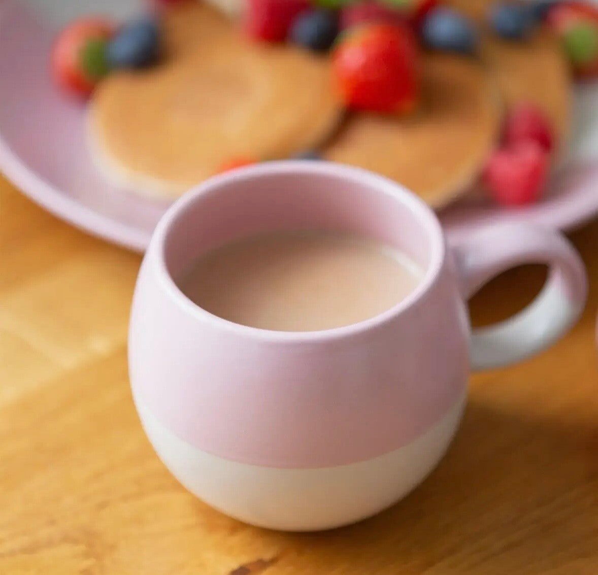This stoneware mug is stylish and so on trend with its dipped colour and spherical shape