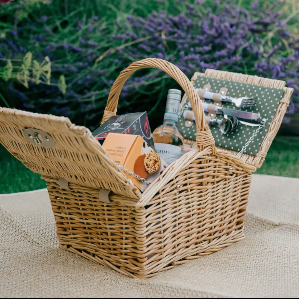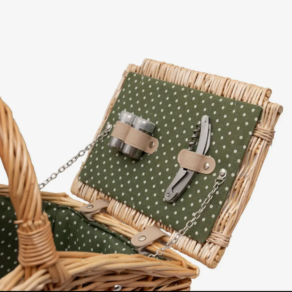 How charming is this two person wicker picnic basket?